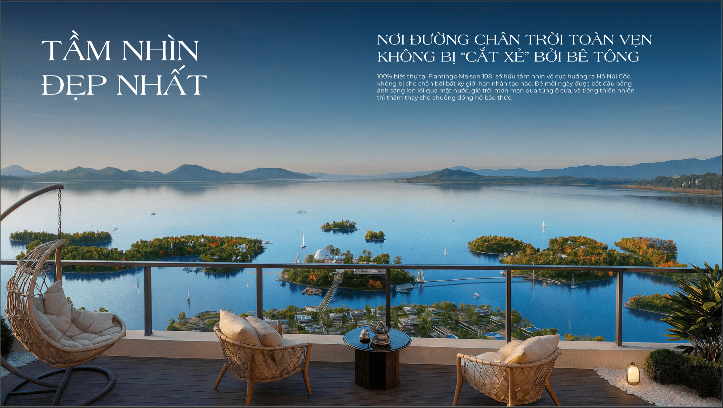 • 🏊 Bể bơi vô cực view hồ – thiết kế sang trọng, kết nối thiên nhiên.